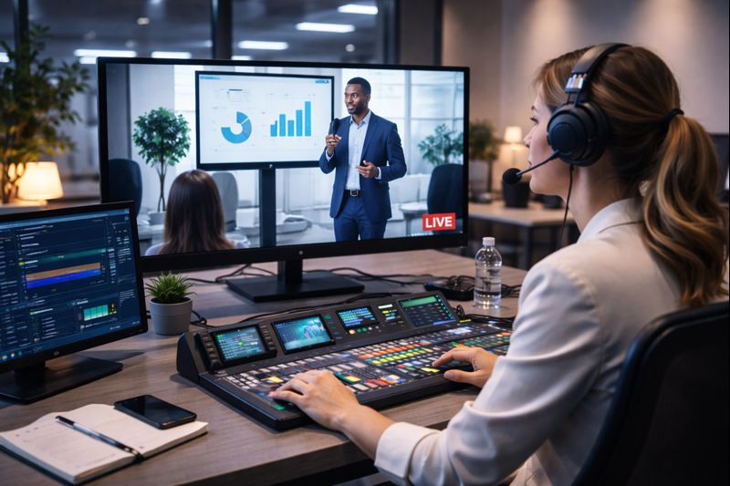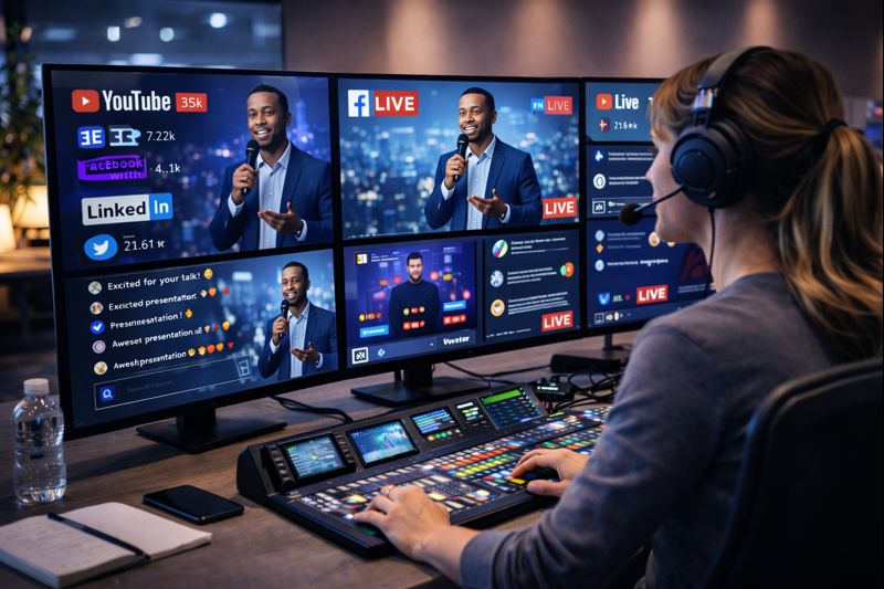 Brindamos servicios de transmisión en vivo profesional para eventos corporativos, educativos e institucionales, garantizando estabilidad, calidad de audio y video, y soporte técnico especializado durante toda la emisión.